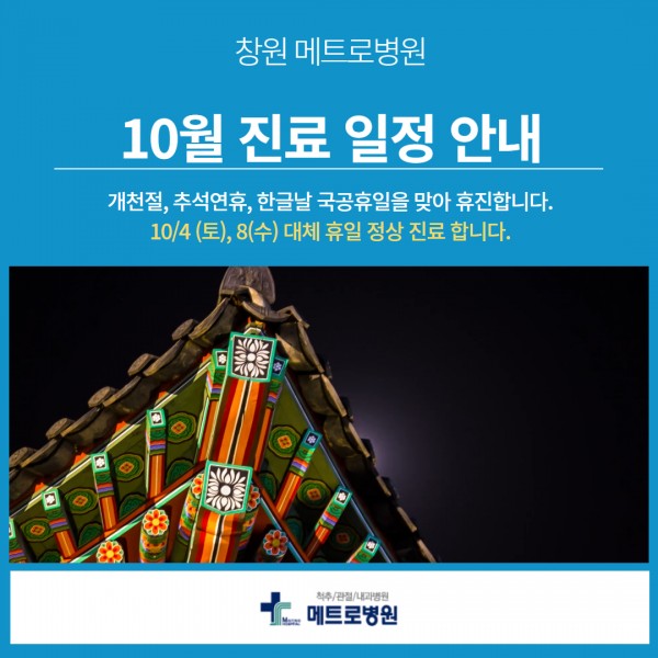 창원 메트로병원은 10월 3일 금요일 개천절과 추석 연휴,
