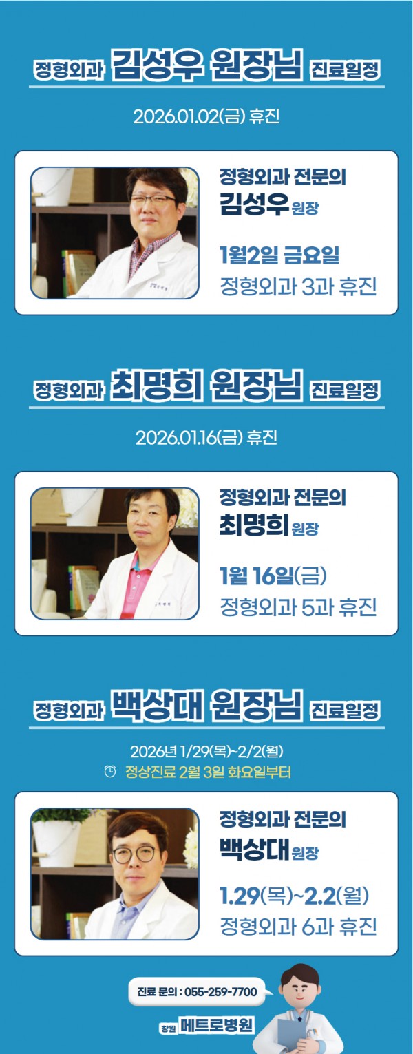 창원 메트로병원 정형외과 일부 1월 휴진 일정 안내