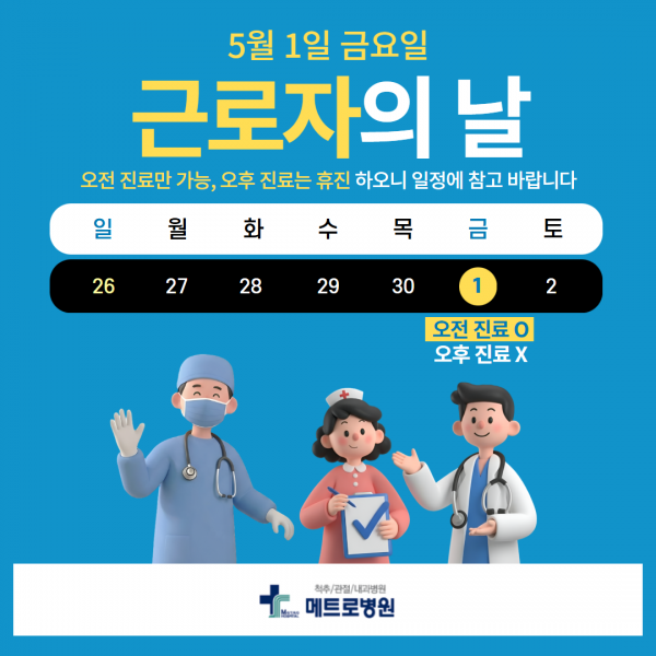 메트로병원 5/1(금) 근로자의 날 진료 일정 안내