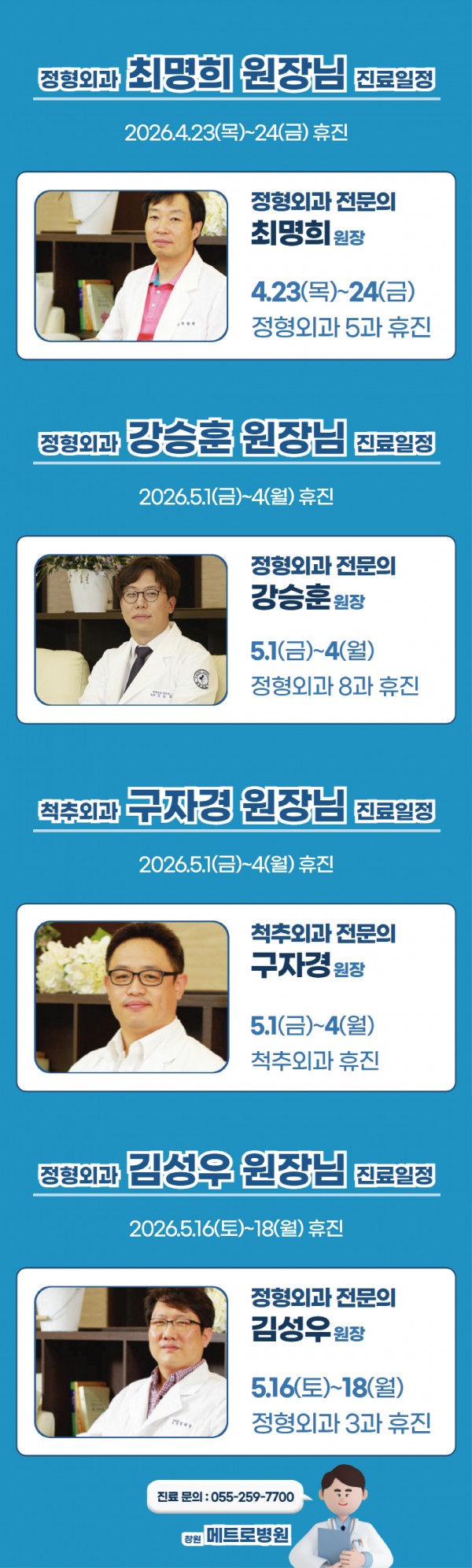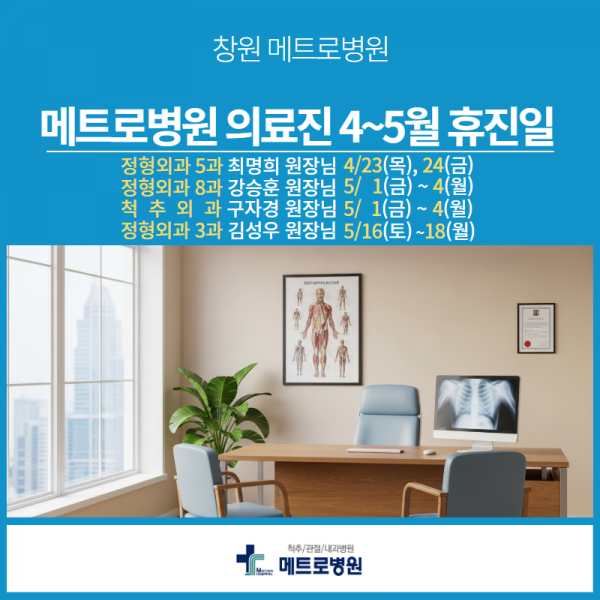 창원 메트로병원 4-5월 일부 의료진 휴진일 안내