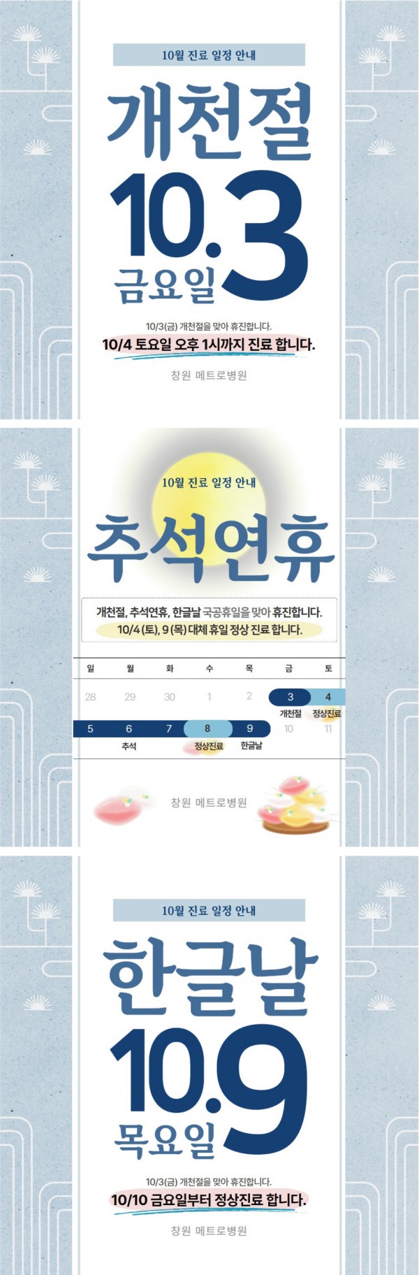 창원 메트로병원은 10월 3일 금요일 개천절과 추석 연휴,