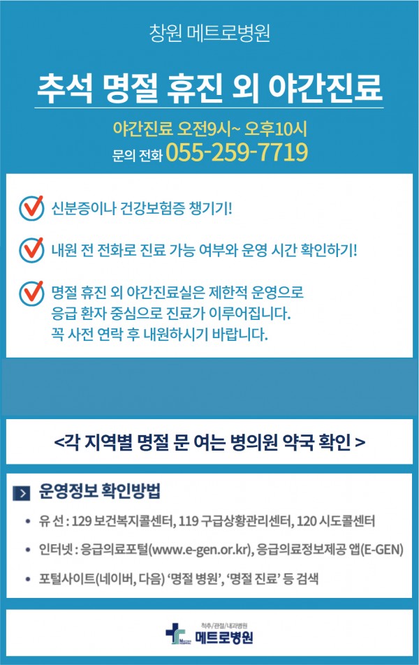 명절 휴진 외 야간진료 문의 전화 055-259-7719